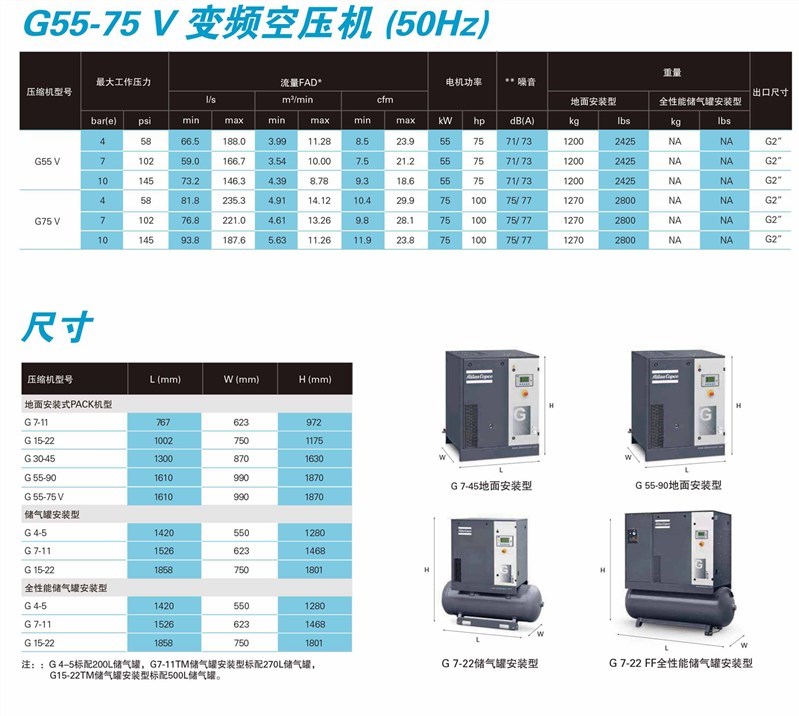 阿特拉斯·科普柯新型的G 4-90/G 55-75 V系列秉承阿特拉斯·科普柯一貫的客戶承諾,為廣大中小型用戶提供強(qiáng)動(dòng)力、高可靠性的螺桿式壓縮機(jī)。